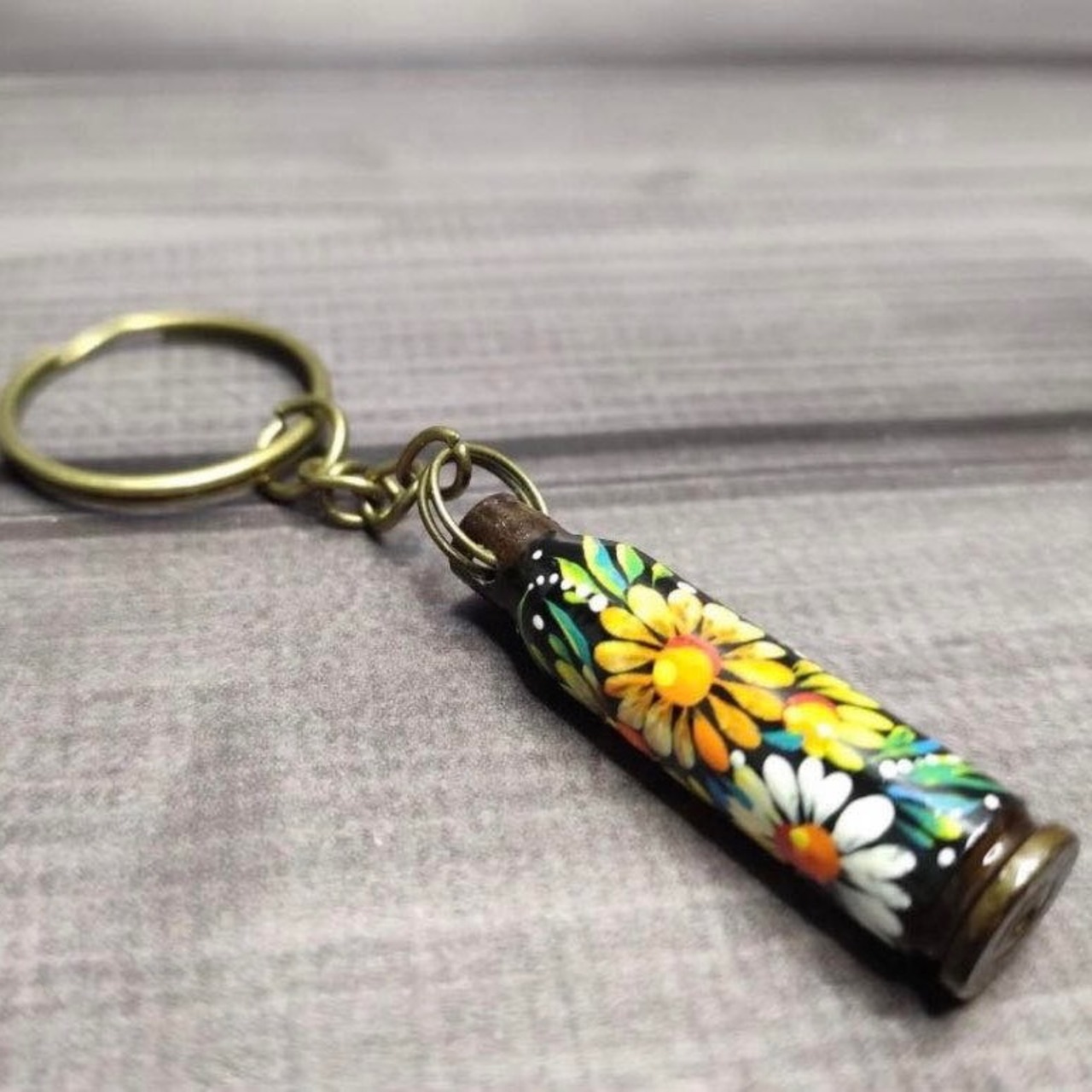 このキーホルダーのデザインは、ウクライナのアーティストによって手がけられました。薬莢のシルエットを生かしながら、クールでスタイリッシュなデザインに仕上げました。一点一点手作業で制作されたため、他とは一味違う個性的なアートピースです。